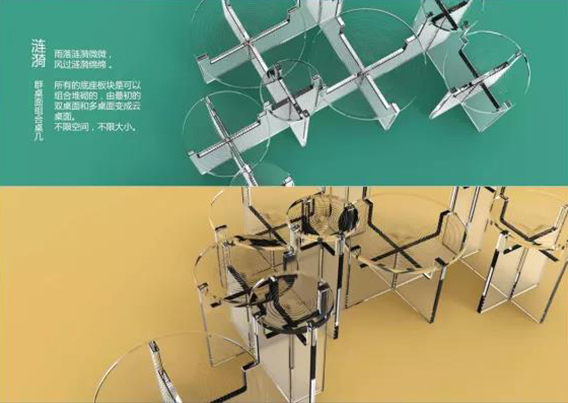 產(chǎn)品介紹:兩款組合方式,雙桌面和三桌面組合。除此以外可以將兩組邊幾的部件多數(shù)組合,形成高低錯(cuò)落的群組 合,就像落雨的湖面,漣漪朵朵。單組作為邊幾,適用于多種風(fēng)格空間,群組合視空間大小自由調(diào)整,亦適用于多種空間。以透明亞克力為材料,切割基型雕刻漣漪水紋,一共5片部件,組合成簡(jiǎn)單、便巧的邊幾,可以是單組呈現(xiàn),也可以是多件組合成片,呈現(xiàn)不同效果,可以配合多種使用場(chǎng)景,也可搭配多種風(fēng)格