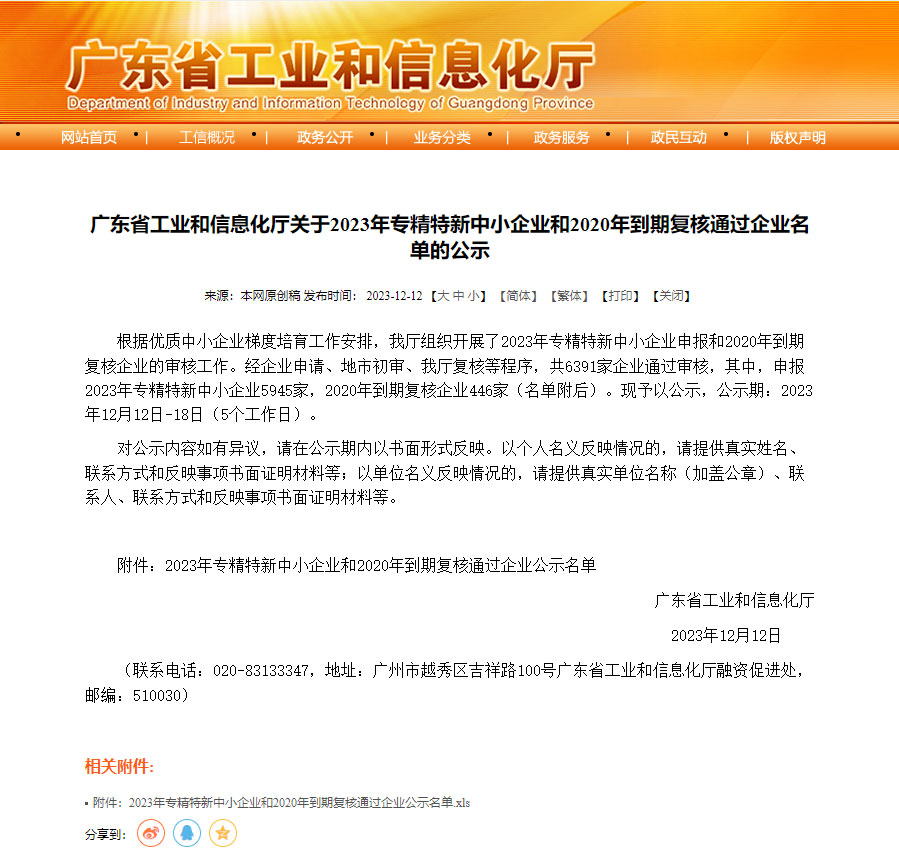 榮獲“廣東省專精特新中小企業(yè)”稱號(hào)!
